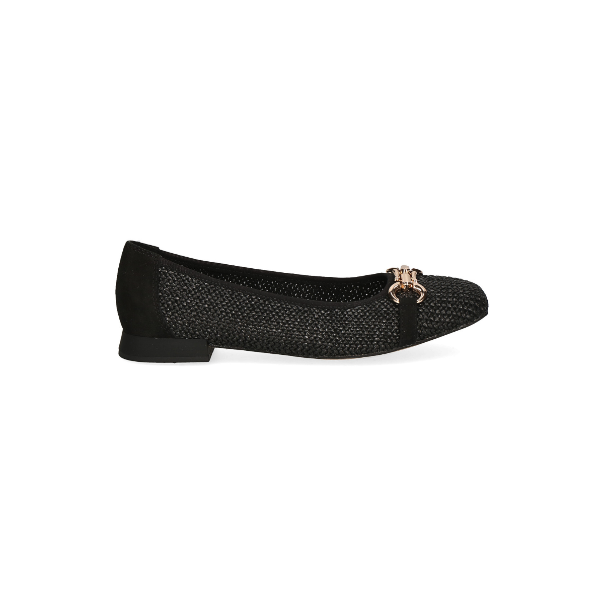 Model Caprice cipela karakterizira prostranost i vrlo mekani prilagodljivi materijali. Gornjište je izrađeno je od mekanog i prilagodljivog tekstila dok je unutrašnjost izrađena kombinacijom kože (tabanica) i tekstila ( obloga). Debljina pete približno iznosi 1 cm dok pod prstima iznosi 0,5 cm. Crna boja ove balerinke je uvijek siguran odabir za sve kombinacije a zlatni detalj daje dodatnu eleganciju.