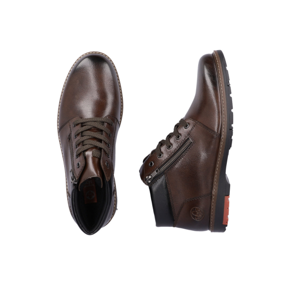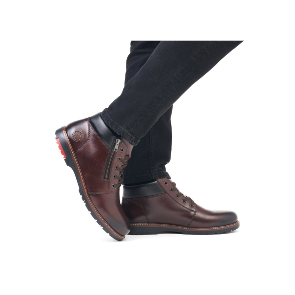 Rieker 10502-25 karakterizira kvalitetna izrada i atraktivan dizajn. Gornjište modela je izrađeno od prirodne kože, a unutrašnjost modela obložena je tekstilom, dok je uložak obložen filcom čime se osigurava toplina i u hladnijim vremenskim uvjetima. Potplat je izrađen od visokokvalitetnog drugog materijala zbog čega je ovaj model Rieker model vrlo fleksibilan i u potpunosti prilagođava obliku i širini Vašeg stopala. Dodatni plus je dvostruka mogućnost obuvanja/izuvanja pomoću vezica ili zip zatvarača, odluka je na Vama.