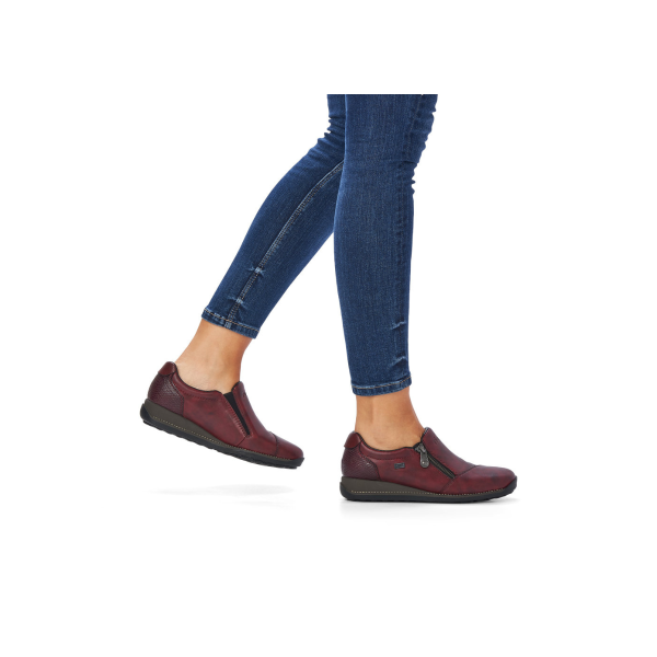Model je idealan za kombiniranje – od svakodnevnih, sportskih kombinacija do onih poslovnih. Prekrasna bordo boja, te jednostavan dizajn odlike su ovog modela ženskih cipela. Također, prednost modela je jednostavno i praktično obuvanje pomoću cif zatvarača s jedne strane kao i elastične trake s druge strane koja se maksimalno prilagođava Vašem stopalu. Odabirom ovog Rieker 44265-35 modela razmazit ćete Vaša stopala. ☺