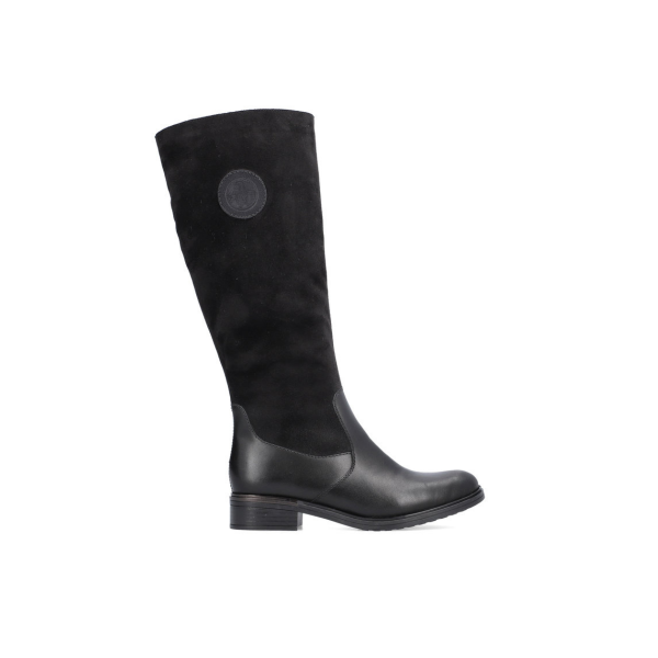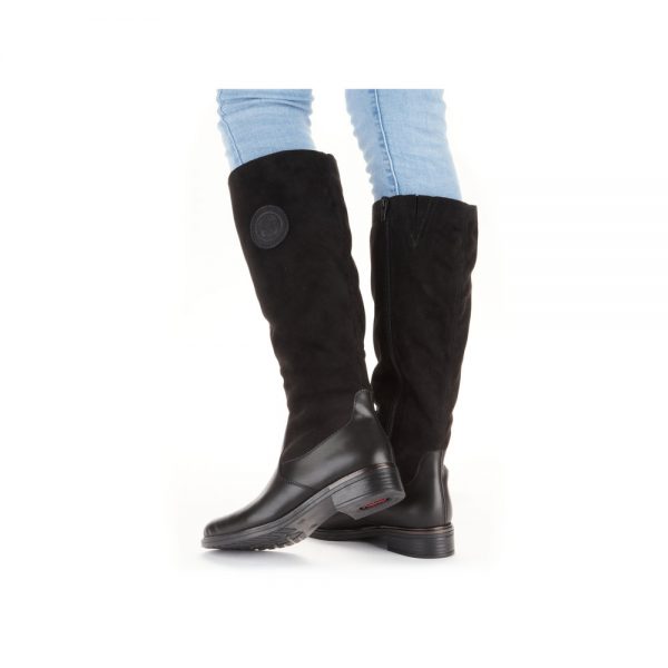 Model Rieker Z5372-00 je prekrasna, atraktivna čizma do koljena koju karakteriziraju prostranost i vrlo mekani i prilagodljivi materijali. Posebnost ovog Rieker Z5372-00 modela što se sara modela može proširiti zahvaljujući elastičnom materijalu na sari čizme.. Gornjište ovog modela izrađeno je od mekane kože dok je unutrašnjost obložena ovčjom vunom. Potplat je blago podebljan, a njegova debljina iznosi 1 cm dok visina pete iznosi  2,5 cm što je optimalna visina za Vašu kralježnicu.