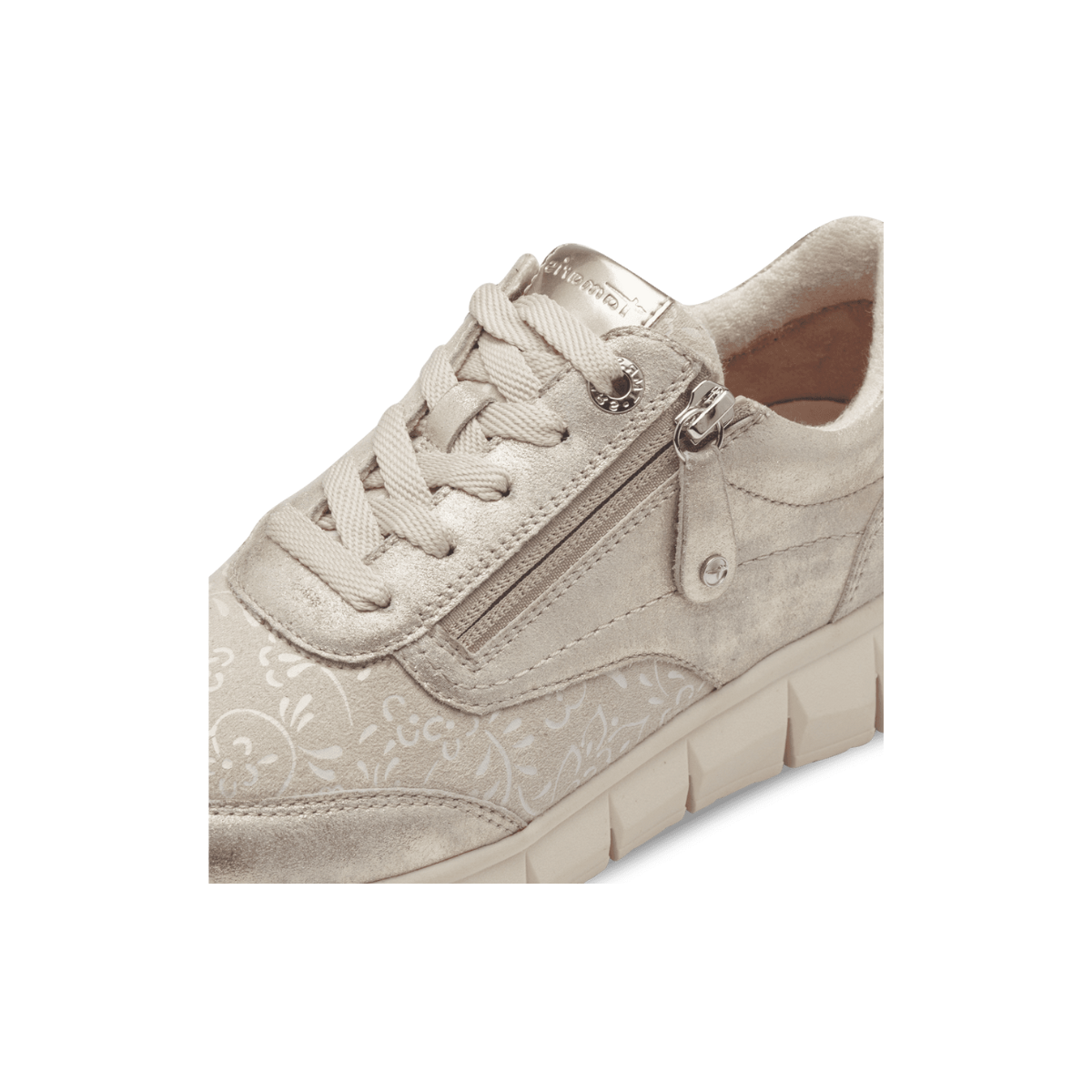 Model ženskih cipela Tamaris 8-83705-20 G karakterizira prostranost i vrlo mekani i prilagodljivi materijali Gornjište ovog modela izrađena je kombinacijom mekane prirodne kože i tekstila kao i unutrašnjost. Odličan izbor za svakodnevno nošenje, te se vrlo lako može kombinirati i privatno i poslovno. Debljina potplata na peti približno iznosi 2,5 cm, a pod prstima iznosi 1,5 cm što je optimalna visina za svakodnevno hodanje. Obzirom da je model Tamaris 8-83705-20 G iznimno udoban vrlo lako će se uklopiti u Vašu top listu omiljenih cipela za ovu sezonu.